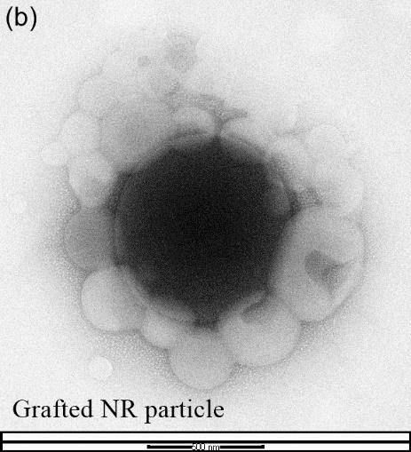 ลักษณะสัญฐานวิทยาของอนุภาคยางธรรมชาติและ (b) ยางธรรมชาติที่กราฟต์ด้วยไดอะซิโตนอะคริลาไมด์