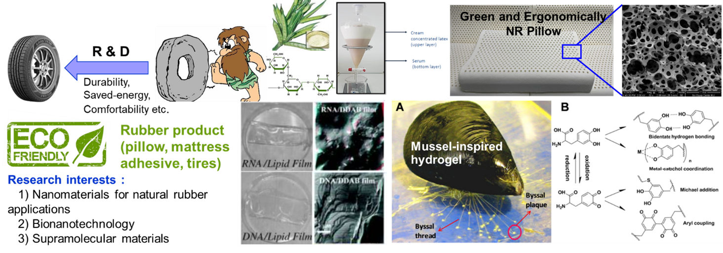 เทคโนโลยียางล้อ น้ำยาง และยางฟองน้ำ ผลิตภัณฑ์จากน้ำยางพารา วัสดุคอมพอสิต วัสดุชีวภาพจากธรรมชาติ วัสดุพอลิเมอร์ นาโนเทคโนโลยี
